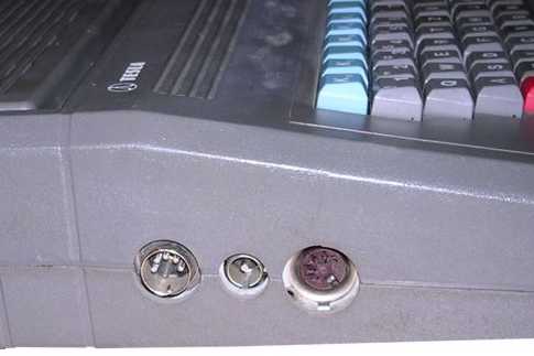 The male DIN connector is power supply connector. Small one is RF output for connecting TV, the last one, female DIN5, is video output.