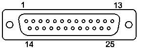 Mini-DIN (keyboard and mouse, PS/2) VGA D-sub 15 (pin 9 is the key - no pin) DB25M connector.