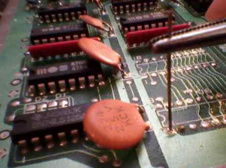 And how to avoid soldering to socketed IC U2: Take it from here (the IC on the left is U2, pin 20 on the right). I don't know about other revisions, so better check it with ohmmeter: