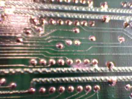 Now check with ohmmeter haven't you cut any lines. If you did, repair it with wires or solder. We're ready to solder sockets there. If socket's pin can't go into hole, repeat the needle procedure.