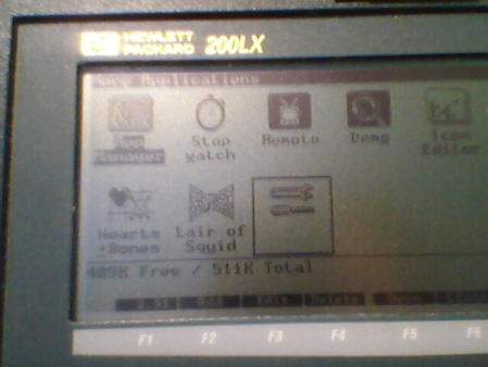 And there's one more thing. If you delete more of these ROM program icons, you should really back up your silicon drive to flash drive after every successful change in icons. And you must keep an eye not to add more than 32 icons. Why? Because the 32 icons limit can be overriden and 200LX will allow you to create 33th icon - adding one more record to APPMGR.DAT, writing it over its own icon definition. This MAY  HANG THE SYSTEM MANAGER FATALLY until you restore a good APPMGR.DAT! Look here: