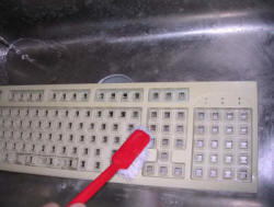 cloth dipped in alcohol, every conductive rubber has to be slightly cleaned.