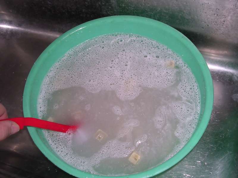 normal dishwashing liquid is enough) and stir them using a brush on longer