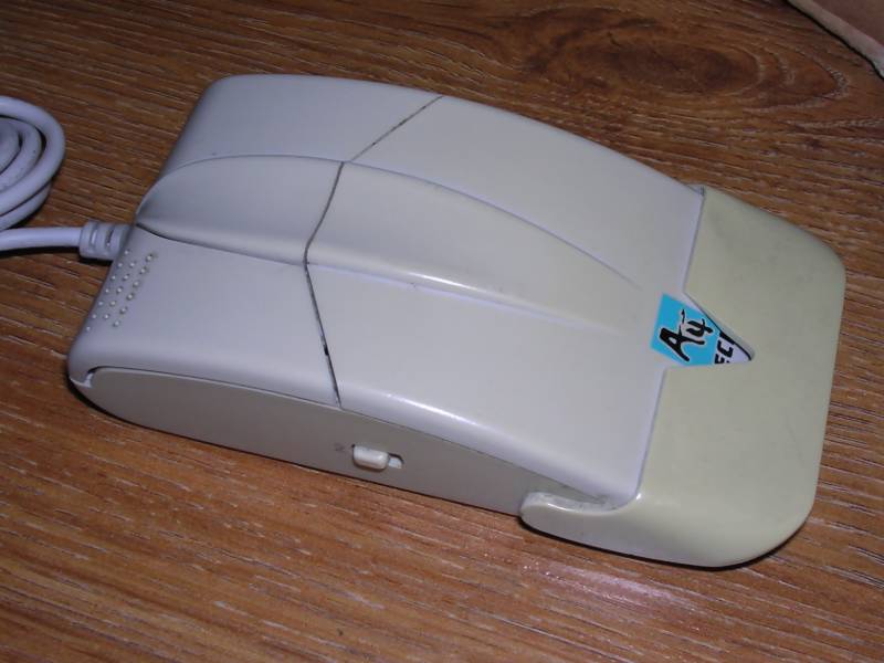 | Information: A4Tech made some interesting computer peripherals, and this is one of the designs which were never adopted by users. This mouse had part of a rear casing on a small hinge. By putting it down, mouse could be held with a palm. When it was put up, it forced finger grip, in which mouse is moved mostly with fingers. After using it was possible to just make this mouse stand vertically and not occupy so much space. These mice were not popular too much, as its design was quite eccentric as for PC mice. It was marketed since before Win95. |
