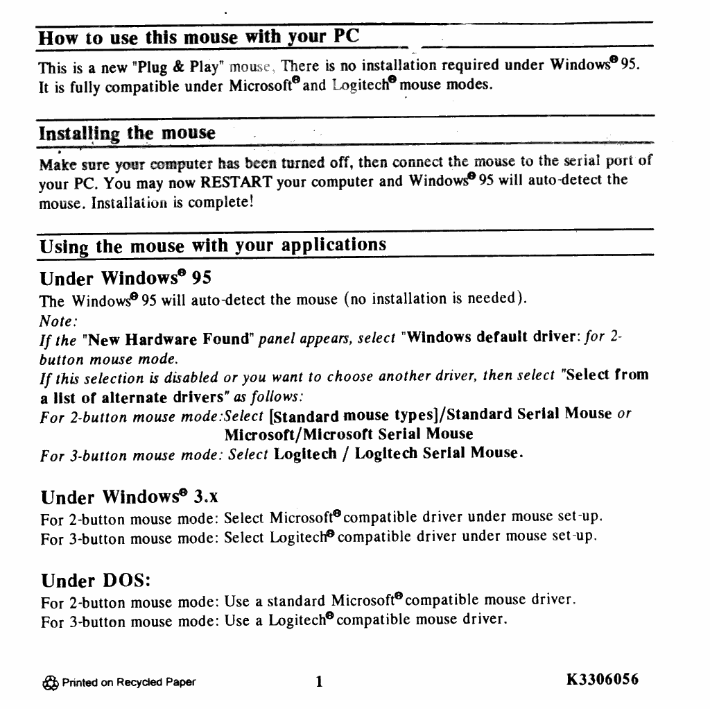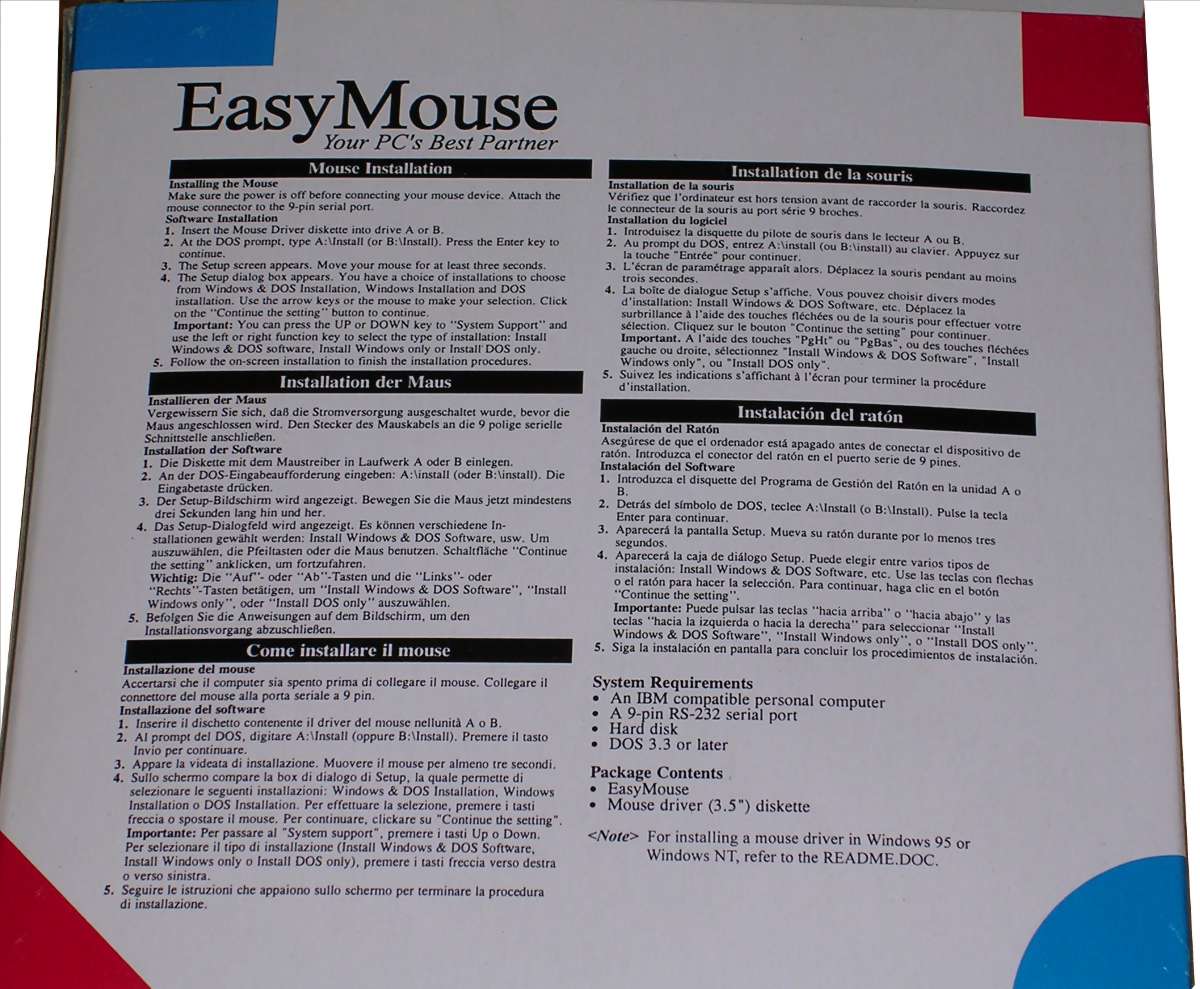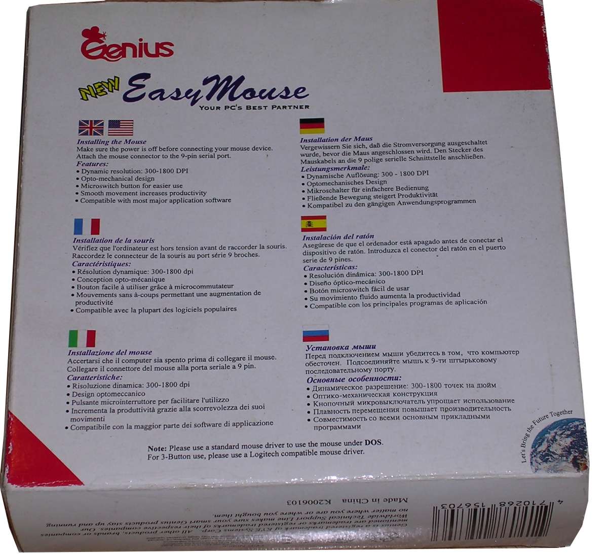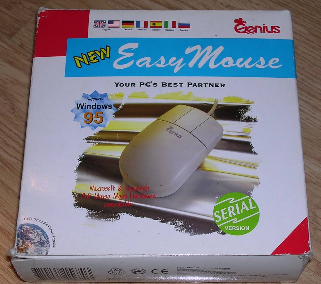 | Information: In 1995 many peripheral manufacturers marketed their ordinary peripherals as "Windows 95 compatible". This mouse is one example of such marketing. It is a typical PC 3-button mouse connected to serial port, made by CCW, but similar mice were also sold with Genius brand. It works as well in DOS as in Windows 9x. This particular unit is new, I got a few of them after computer service went bankrupt. These mice were quite cheap and frequently were bought with new PCs. ![]() |