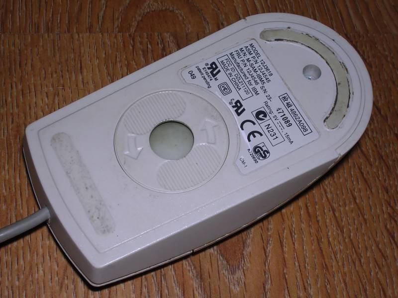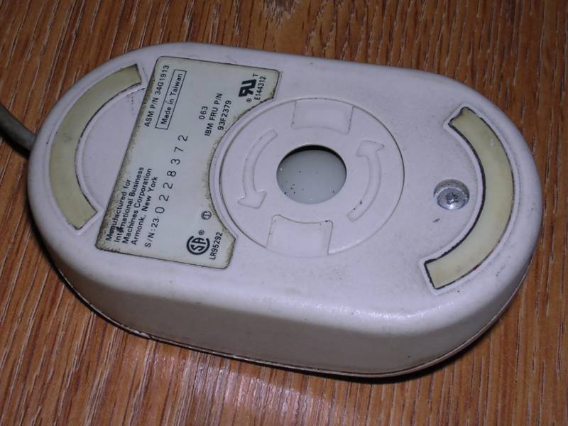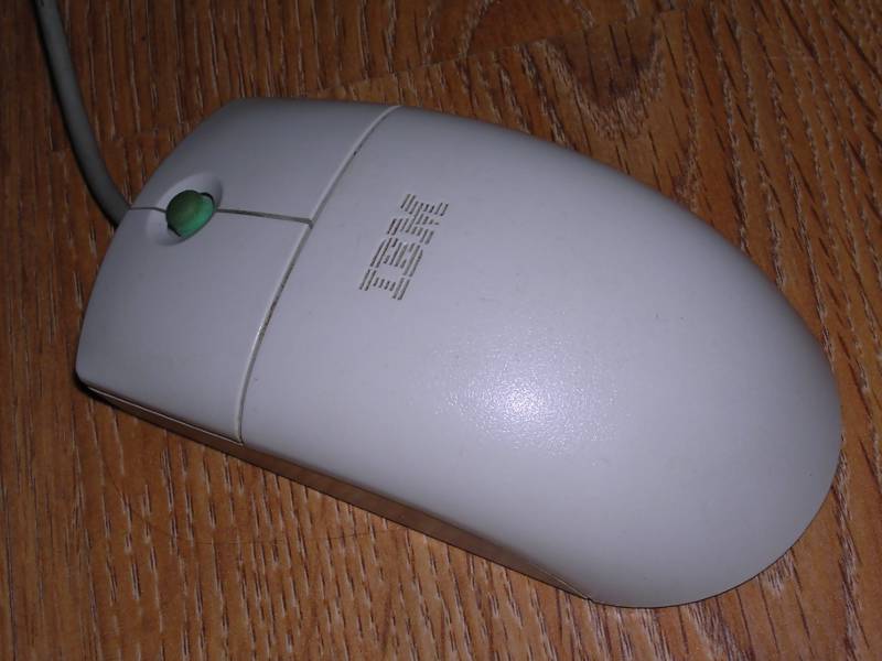 | Information: This is a small mouse offered with some IBM late Aptiva and PS/2 computers, as well as re-started PC line. However, more frequently larger mice were sold. These small mice were chosen by customers who purchased ThinkPads - to have a portable mouse for a portable computer. You can see similar mouse, but black in ThinkPad 850. This mouse was designed with portativity in mind, as it is lighter than typical mice and its buttons are scaled down especially to prioritize left button. |