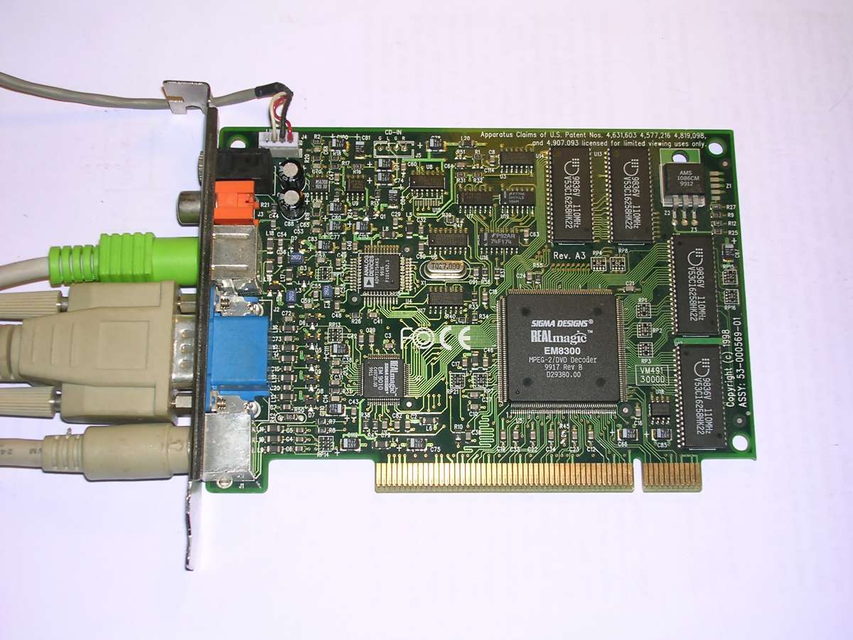There were things which video boards could not do. Decoding a video for DVD could be done with CPU, but it required a very fast processor these times. To solve this problem, boards like this one were used - they added a complede dedicated MPEG decoder chip to a computer. It communicated with PC using video overlay (adding picture right to the signal fed to monitor) or just emitted picture on TV out. They required specific drivers and software.