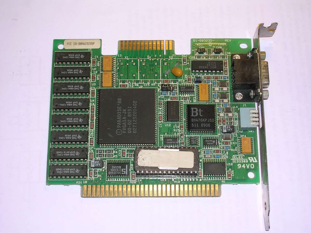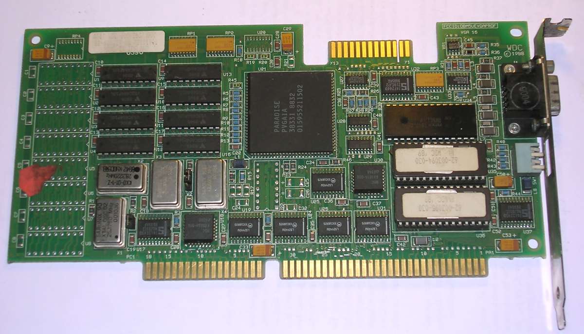 Paradise VGA - a very popular VGA clone in early 1990s. This board was the easiest and cheapest way to get 800x600 with 16 colours in 1990 and 1991. This board had some advanced features - it has standard VGA feature connector (standard in early 1990s was an edge connector).