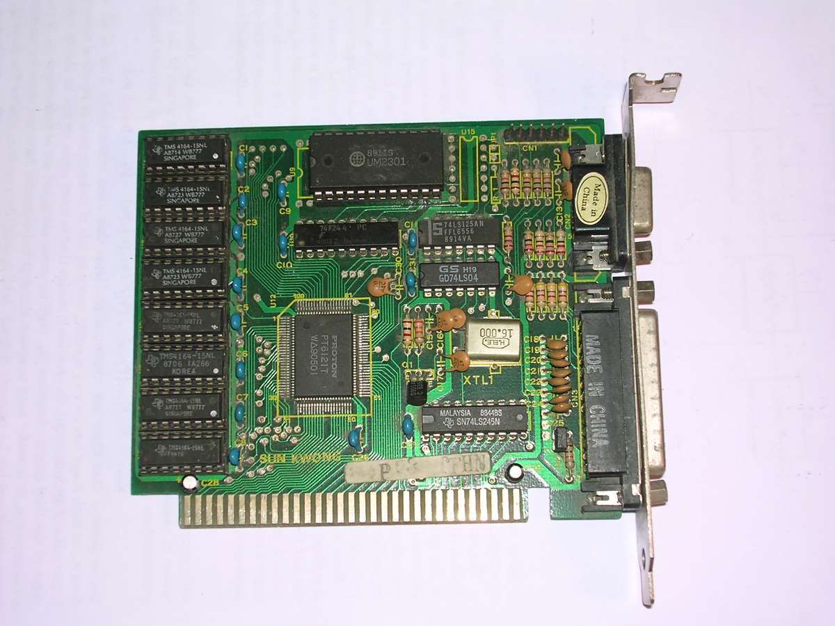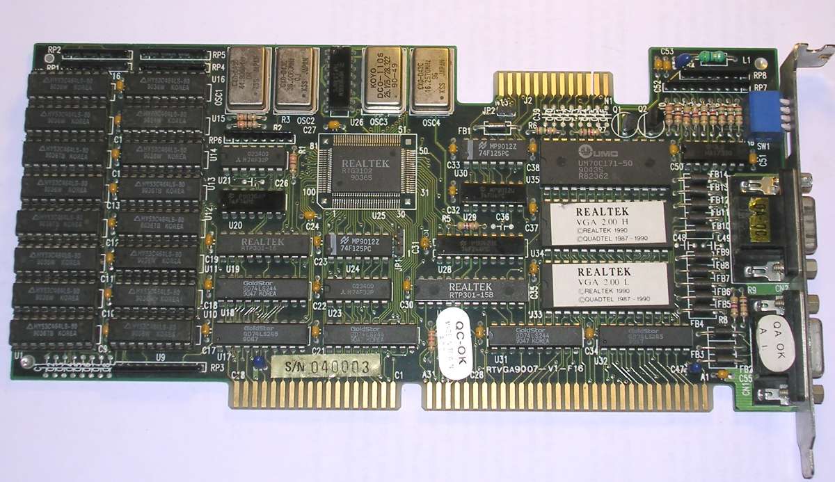 Realtek RTVGA9007 was the higher-end VGA board in early 1990s. It was possible to connect VGA display as well as TTL one which emulated color. its 512kB of RAM allowed to get even a nice 1024x768 when good monitor was used.