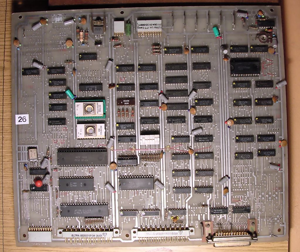 To say more, Mera units were usually based on Z80 CPUs. This mainboard is based on 8080 CPU, made by Polish CEMI, and has a picture generator based on character ROM from CEMI too.