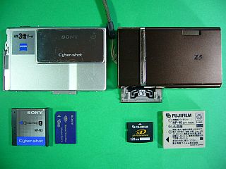 幸いバッテリは入ったままだったので、これを別途充電して働かせたら、正常に動作しました!時々使っているFinePix Z5fdと、(意味も無く)並べてみました。(左写真<クリック>)