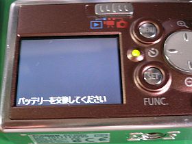 これは、時々左写真のように、“警告メッセージ”が出ます。(バッテリは、充電直後なのに!左写真<クリック>)