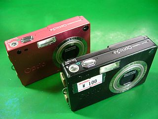 何時もは通りすがりに、(余り期待もせずに)覗き込んだ“店内のジャンク箱”に、偶々このOptioS4黒のジャンクがあったので、さっと買って来ました。(左写真の手前 \100税込み)