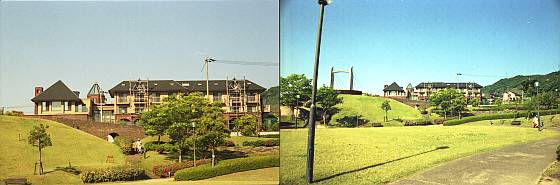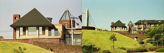 比較用として、(昨日撮ったデータをうっかりして、壊してしまったので、改めて)翌朝、同じ位置から、OLYMPUS C-770で、同じターゲットを撮影してみました。左望遠側、右広角側。