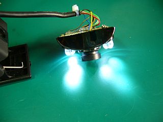 これは、6個のLED照明付きで、もしかしたら「赤外発光LED」かな?と期待したのですが、只の白色LEDデシタ!(まぁ、こんなのは夜間の屋外投光用としては、殆ど役に立たないでしょうけど)