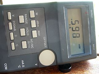 カメラに入射するはずの「光量」に関して、太陽が上にあって、周りがかなり明るい時、光パワー計で(カメラの向きに)見ると、約0.6mWでした。(ふーむ、これは、「液晶バックライト用CCFTの管面上」の明るさに近いですね)