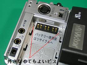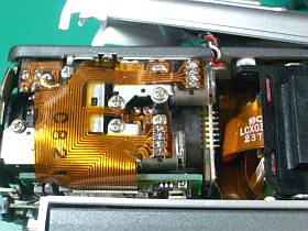 また、左写真<クリック>では、(今は邪魔なビューファインダ/アイピース部を外してあるので、)CCD基板部が見えます。が、このままではコネクタがよく見えません。