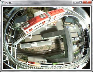 差し渡し約44cmの鉄道模型の線路の端と端を見る(図3)のに、この魚眼カメラの高さを約9cmにすれば可能だった。