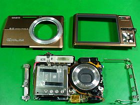 このカメラも、最近の傾向に沿っているようで、分解はかなり楽です。(ビスも統一されていて、挿し間違いをせずに済みます)