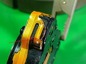 CCD保持部の裏の金属カバーを嵌め込む時(左写真<クリック>)、フレキに傷(裂け目)を入れてしまった/シマッタ!