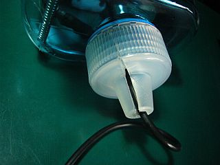 キャップの中心にケーブルを通すために、(カメラの方は触らずに、)キャップに切り込みを入れて、一時割ってケーブルを通した。(図5)