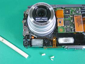 これの土台は、ひまじんtpさんにあやかろうと、先日大阪・梅田の然る中古カメラ店まで行って漁って来たEX-Z3で、レンズ部が見事に壊れていたもの。(\450税込み)