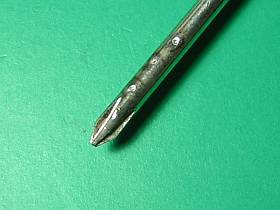しかし、(何時もの事ながら)キャパシタに溜まっている電気量は凄いですね。ドライバでショートして放電させてみたら、バチッ!溶けて、小孔が出来ました。