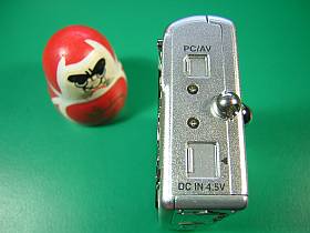 今までのOptio SOptio S4などでは、入出力端子カバーにゴム蓋を使っていましたが、今回のOptio S5zは、それらを全部金属に代えたようですね。しかも、スライド式になっています。(これは、気に入りました!)