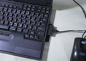 逆に、不便な点は、LANカードからのコード引出し部が出っ張り過ぎて、少々具合が悪い。特にカード・スロットが右側にあるTP560,560Eでは、モロ邪魔!