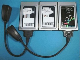 Accton製カードは、Win95/Win98では、ドライバ自動組み込みなので大変使い易く、愛用しているのだが、付属ケーブルは不足気味だし、その内の1本は半壊状態。だから、当苑では貴重品なのだっ!見付けた瞬間、手で掴んでいた。