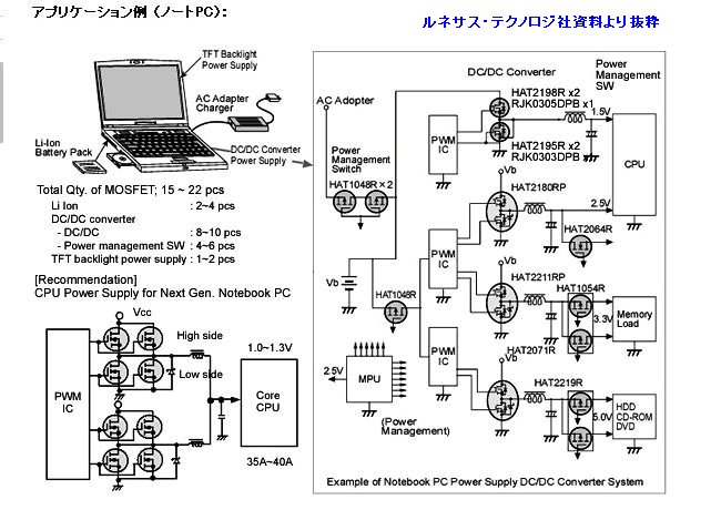 回路構成は、例えば、ルネサス社のMOSFET応用資料(部分抜粋)が、少しは参考になるかと睨めっこ中。