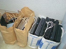 今回も、捨てる中には、ちょっと手を入れれば動くノートPCも数台ある。しかし、もう旧型だし、今となっては修理して使う程の魅力は無いので、空き場所稼ぎに廃棄の仲間に入れた。(左写真<クリック>で、VA23DやTP310など)