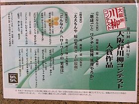 偶々、大阪の地下街で見掛けた「大阪弁川柳コンテスト作品」だが、なかなか面白い!のが多い。(左写真&<クリック>)