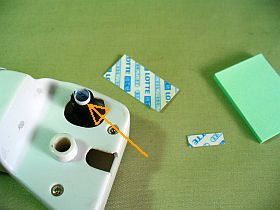 考え難かったのだが、どうやら駆動部の“プラスチック筒内側の磨耗”が原因だったようで、ここに平滑面のある厚紙(ガムの捨紙の台紙)を詰めて隙間を減らすようにしてみた。(左写真)