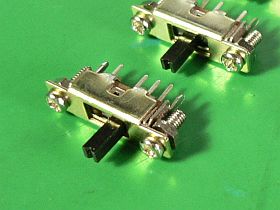 これは、“ビス孔付き1回路2接点”のSW座金と“ビス孔無し1回路3接点”の小型SWとを組み合わせて、“ビス孔付き1回路3接点”SWにしたってこと。(左写真&<クリック> 各\30/個税込)