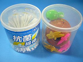 何か適当な容器は無いか?と探したら、「綿棒ケース」が丁度良さそう!完璧に、スッキリ!...とは行きませんでしたが、一応詰め込めました。(左写真 苦笑)