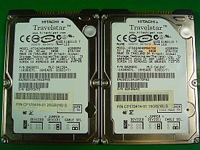 日本橋のPCジャンク店「大阪市内」が今月下旬に閉店するそうで、“全品20%引き”だったので、記念に20GB表示HTS424040M9AT00(40GB品)を、1個買って来ました。(左写真の左側 \700税込み 因みに、右側は以前に買った15GB⇒40GB品