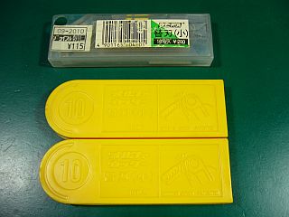 日本橋の“五階百貨街”を通り抜けていたら、途中の店で「OLFAカッター&容器」の“処分品”を見掛けたので、パッと2個買って来た。(図1 黄色ケース2個\100税込み)