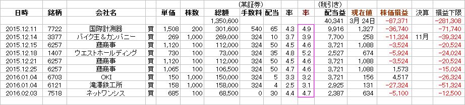 そこで、方針を半分だけ変更して、十分値上がりしたと見える銘柄だけは、配当を受ける権利は捨て「値差の利益」を得て、終了することにした。