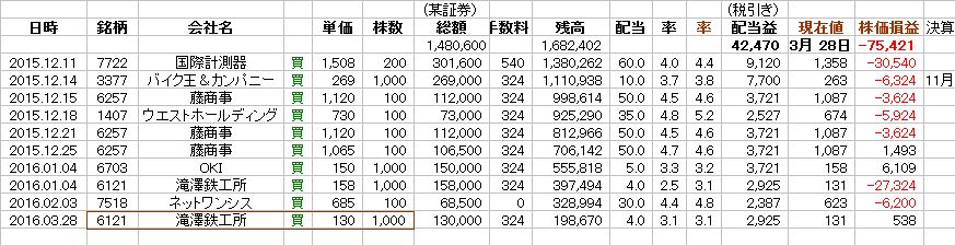 「滝澤鉄工所(6121)」を、130円で1、000株だけ、買い足した。