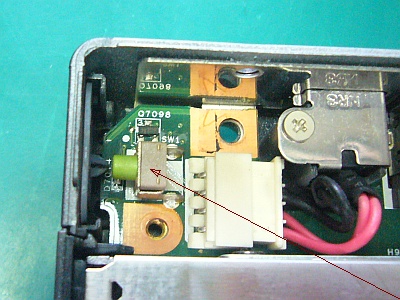 ざーっとみたら、電源入力部近くに「押しボタンSW」が隠れていたのが見付かった。(図1)