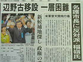 普天間基地”の移設予定先だった“辺野古”が、また一歩遠退いたようだとの報道。(例:左記事)