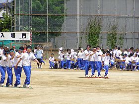 「百足競争」を見ていると、先頭の方ほど背を低くするグループもあれば、逆に背を高くするグループもありました。(左写真&<クリック>)
