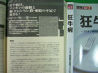 狂牛病/BSEなどは、“(未だに発見出来ないウィルスによる)伝染病”だと思っていたのですが、どうやら違うらしい!マンガン・イオン/Mn++過剰摂取と、その悪影響を抑制出来る銅/Cu、鉄/Feイオンの不足と(の組み合わせ)が主因のようです。