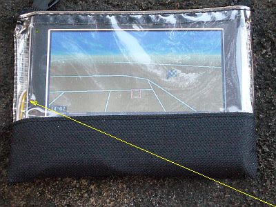 この2本をバッグ下部に置く/敷くと、“ナビ画面”が「携帯バッグ」のちょうど透明部にまで持ち上がる。