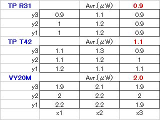 結果、暗くなったThinkPadの液晶画面(9箇所の平均値)は、およそ1μW、現用のVY20Mでは約2μWである!と出ました。w(^^;w