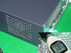 (人間の聴覚に合わせた)A特性、FASTでは、NetVistaでおよそ70db弱、DeskSide機の中を覗くようにして測った場合約65db弱。(左写真&<クリック>。但し、常に±5dbほどの変動あり)