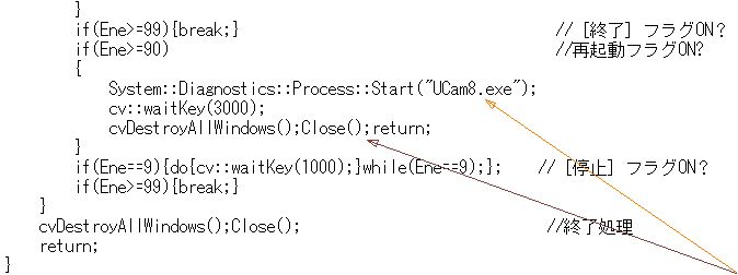 ...素人的な窮与の一策で、エラー発生が起きる前に、プログラム(UCam8.exe)を停止&再起動すればどうか?と考えた。
