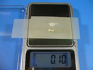 通常、捻り出す液量は、略(ほぼ)0.05g(左写真<クリック>)だったようで、(当然、0.1g計では見えなかったのですが、)目分量で押し出しても、両方共それ程大きな差異は無さそうだと分かりました。(左写真)