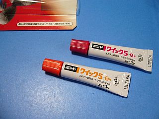 ラフにくっ付けられて、しかも強度が必要な場合の接着は、やはりエポキシ系で、それも2液混合式のものが一番だろうと思って(/思い込んで)いるので、2液混合接着剤をよく使っています。 ... しかし、接着結果は、あまり/全然良くない!